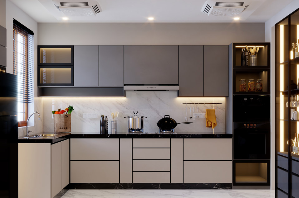 Designed as a comfortable home away from home, this alluring property in Hub Chowki is a modern retreat for city dwellers. We wanted to ensure the property’s exterior complemented the landscape, so we designed a sleek building façade with dark-coloured pergolas.